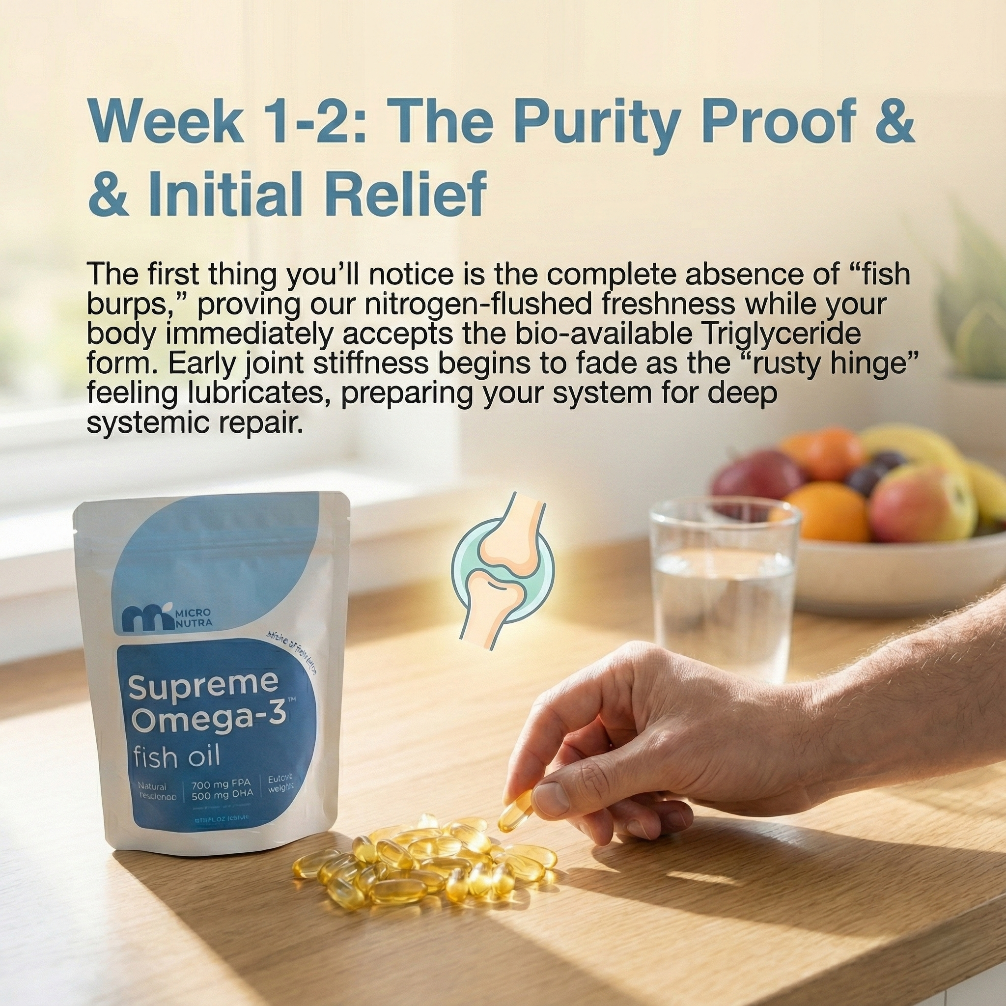 Week 3-4: First noticeable shifts—less joint stiffness in the morning, slight improvement in mental clarity